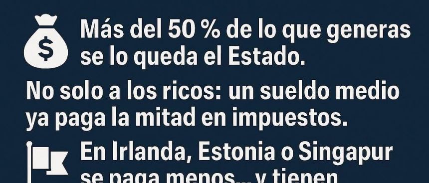 En España, más del 50 % de lo que generamos acaba en manos del Estado a través de impuestos. Y no hablamos solo de los grandes patrimonios: un asalariado medio, con un sueldo neto de 1.300 € al mes, ya soporta cerca de la mitad de su salario en cargas fiscales si sumamos IRPF, cotizaciones a la Seguridad Social (del trabajador y del empleador) e IVA.