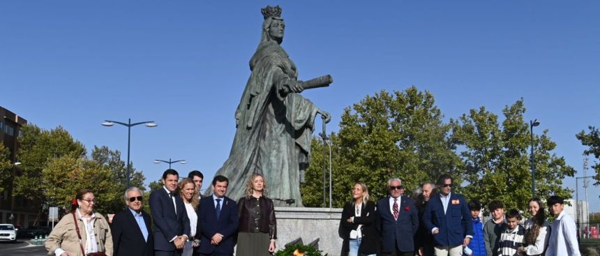 Miembros y simpatizantes de VOX en Ciudad Real han rendido homenaje este domingo, Día de la Hispanidad, a la reina Isabel la Católica con la tradicional ofrenda floral a los pies de su estatua en la Avenida de los Reyes Católicos.